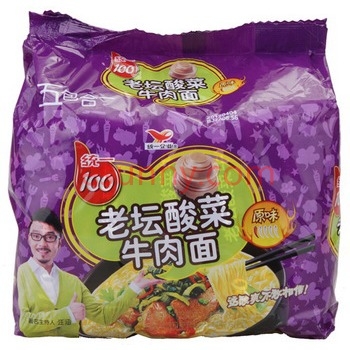 统一100红油老坛酸菜牛肉五合一 118g*5*6